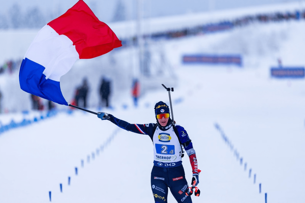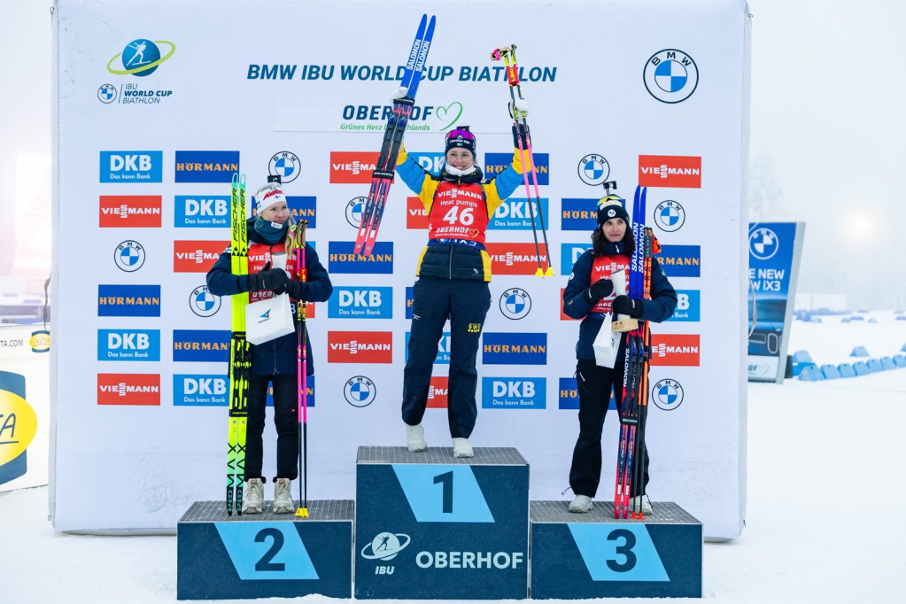Third place was in fact picked up by Hanna Öberg who, despite two misses, joined her sister on the podium thanks to a remarkable comeback from 13th position. Simon, who looked to have nothing left to give in the final loop, settled for fourth, with Preuß repeating her fifth-place finish from the sprint.