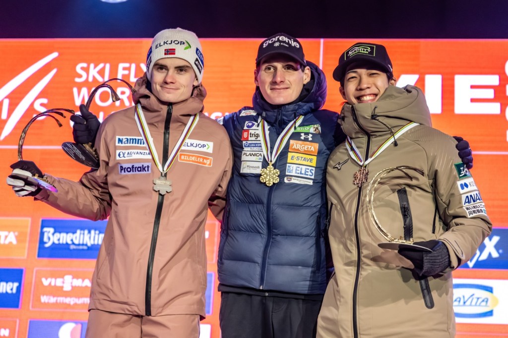 The latter led for a longer time, and thanks to his 221.5-metre jump he made his way into the top 10. The one to take the lead after Østvold was Ryoyu Kobayashi with 219.5 metres. Then, Stephan Embacher bettered the result of Kobayashi by eight metres to attack the podium. It was not enough however, as Marius Lindvik, who was sitting third, achieved a magnificent 231.5-metre result to score a medal. It was a silver medal, as Ren Nikaido jumped only 220 metres and lost to the Norwegian. For Domen Prevc’s jump the gate was moved down from gate 24 to gate 21, but despite that he landed on 222.5-metre mark to win the 2026 Ski Flying World Championships, exactly ten years after his brother Peter won them in Bad Mitterndorf.